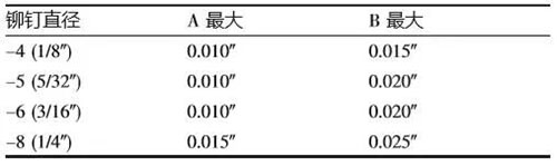 孔松動(dòng)是抽芯鉚釘在裝配過程中普遍存在的問題,可以通過兩種方法改善:一是計(jì)算疊層厚度與夾層長(zhǎng)度,使材料的疊層厚度正好落在抽芯鉚釘夾層長(zhǎng)度范圍的中間;二是在安裝抽芯鉚釘前確定零件間的所有間隙都已消除。