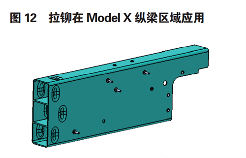 圖 12 為拉鉚螺母和拉鉚螺栓蔚來 ES8 等車型上的應用。拉鉚類標準件廣泛應用于封閉截面的鋁型材,開口截面的鑄鋁零部件上。