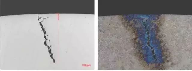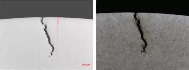 1.典型材料原因導致的裂紋,邊緣為氧化物。
