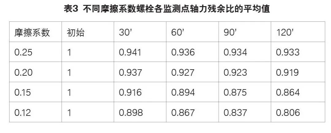 摩擦系數較小的螺栓,在相同扭矩下得到的預緊力較大,但自身防松效果較差??梢姡菟Σ料禂档倪x取是一個平衡防松性能與強度效能利用的矛盾問題。