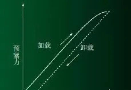 圖示就是QA法的原理,由于螺栓在擰緊和擰松時,用超聲儀所測得的回聲頻率隨螺栓的擰緊(伸長)和擰松(減小伸長量)而發生變化的曲線并不重合,同一螺栓軸向預緊力的上升頻率低于下降頻率。這樣,在用來測量螺栓的屈服點時應予以注意。