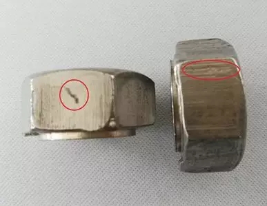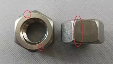 損傷的原因:如凹陷、擦傷、缺口和鑿槽,因螺母在制造和運輸過程中受外界影響而產生的。