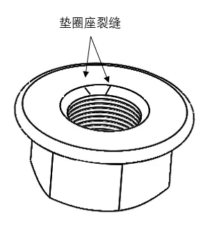 墊圈座裂縫是將墊圈固定在螺母上的過程中,金屬的邊緣或凸起部分的開裂。