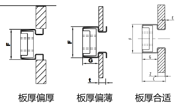 卡式螺母在選型時(shí)需特別注意,每一款卡式螺母都有其適用的板厚范圍,選用時(shí)需要根據(jù)實(shí)際板厚選擇合適的卡式螺母。當(dāng)板厚大于設(shè)計(jì)厚度時(shí),會(huì)出現(xiàn)卡不住裝不上的情況,板厚小于設(shè)計(jì)厚度時(shí),會(huì)發(fā)生不可控的松動(dòng)。另外,大家在選用時(shí)也需要根據(jù)實(shí)際的開孔尺寸選擇合適的卡式螺母。
