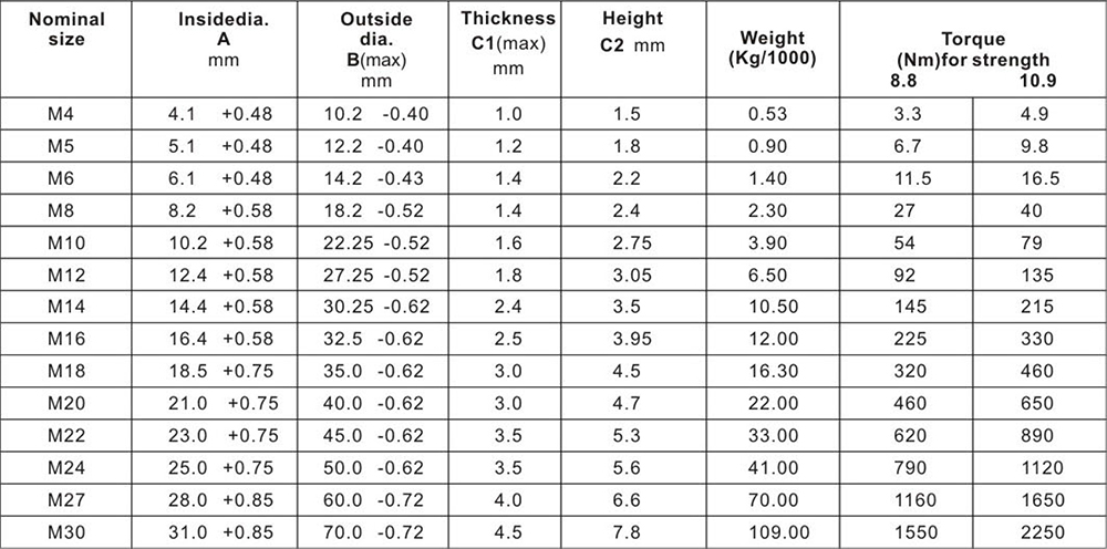 常用規格:M4,M5,M6,M8,M10,M12,M14,M16,M18,M20,M22,M24,M27,M30等。