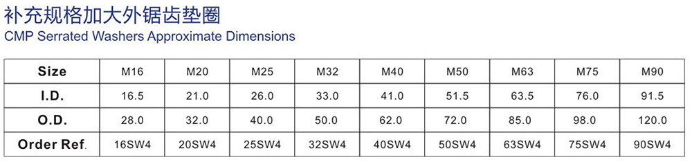 外鋸齒鎖緊墊圈是用在小件上起彈簧作用的,其尺寸與和其一起配合使用三維板材沖壓件的緊固螺釘,自攻螺紋螺釘?shù)拇笮〔畈欢啵忼X墊圈主要用于螺栓的防松。