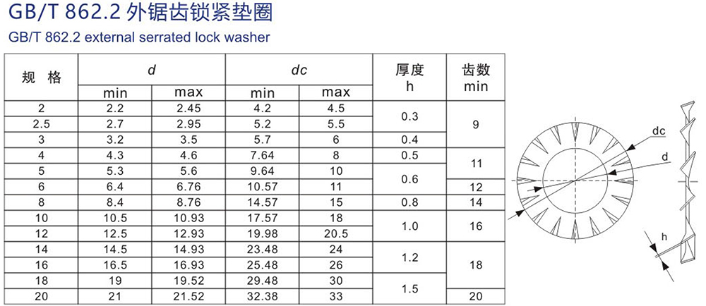 名稱:外鋸齒鎖緊墊圈 GB/T 862.2