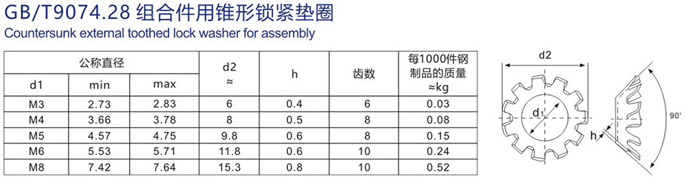 組合件用錐形鎖緊墊圈 GB/T 9074.28-鋸齒彈...