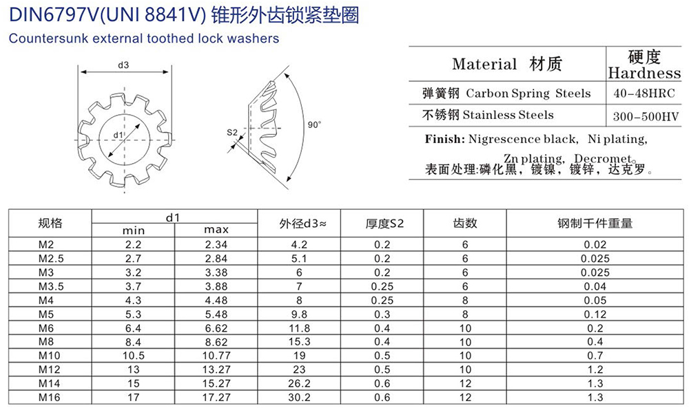 名稱:錐形外齒鎖緊墊圈 V型 DIN6797V